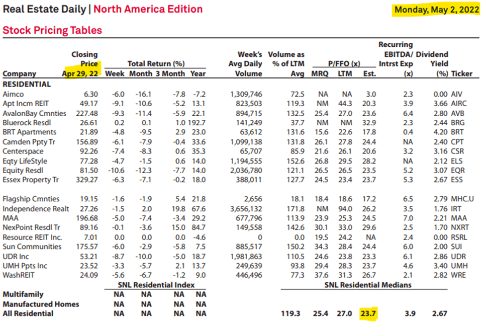 In investment decision making, there are very few guarantees. If, however, on April 29, 2022 (when everyone still loved multifamily REITs) you got long BSR REIT’s (TSX:HOM.UN:CA, OTCPK:BSRTF) $19.55/share follow-on offering, you may now, in 4Q2023, have a new perspective certainty on the particular appeal of your investment. When BSR offered the shares in late April 2022, the multifamily REIT sector was trading at about 24x forward FFO/share and Sun Belt apartment rents were going to the moon.